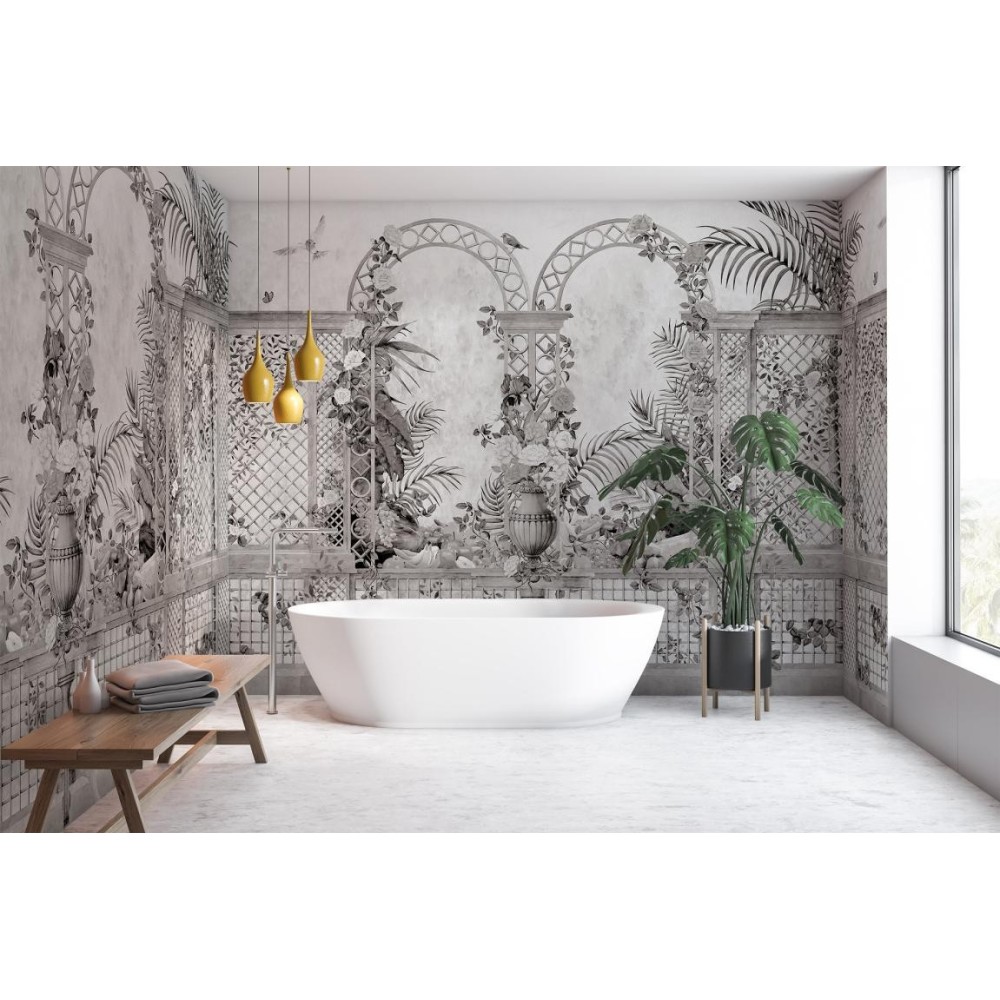 MURAL COORDONNE MAXIMALISM TREILLAGE BLA/GRIS/NEG