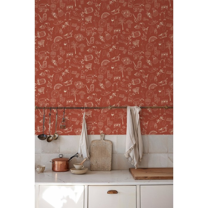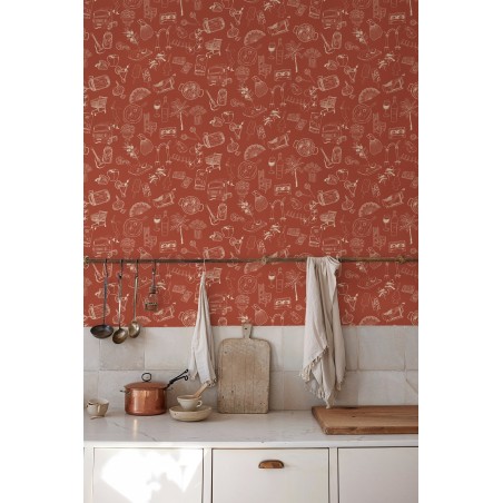 PAPEL PINTADO TRES TINTAS SOLERA SOUVENIRS RED