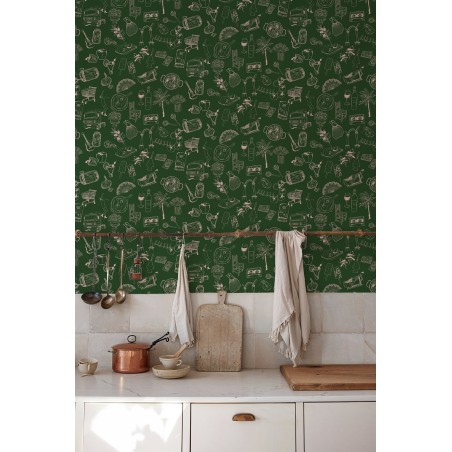 PAPEL PINTADO TRES TINTAS SOLERA SOUVENIRS GREEN