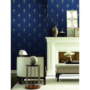 PAPEL PINTADO COORDONNE 24 KARAT LIS AZUL MARI/DOR