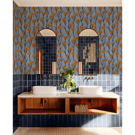 PAPEL PINTADO TRES TINTAS SOLERA CLAVELITOS BLUE