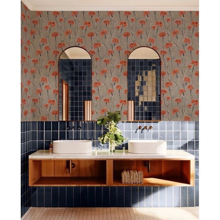 PAPEL PINTADO TRES TINTAS SOLERA CLAVELITOS GREY