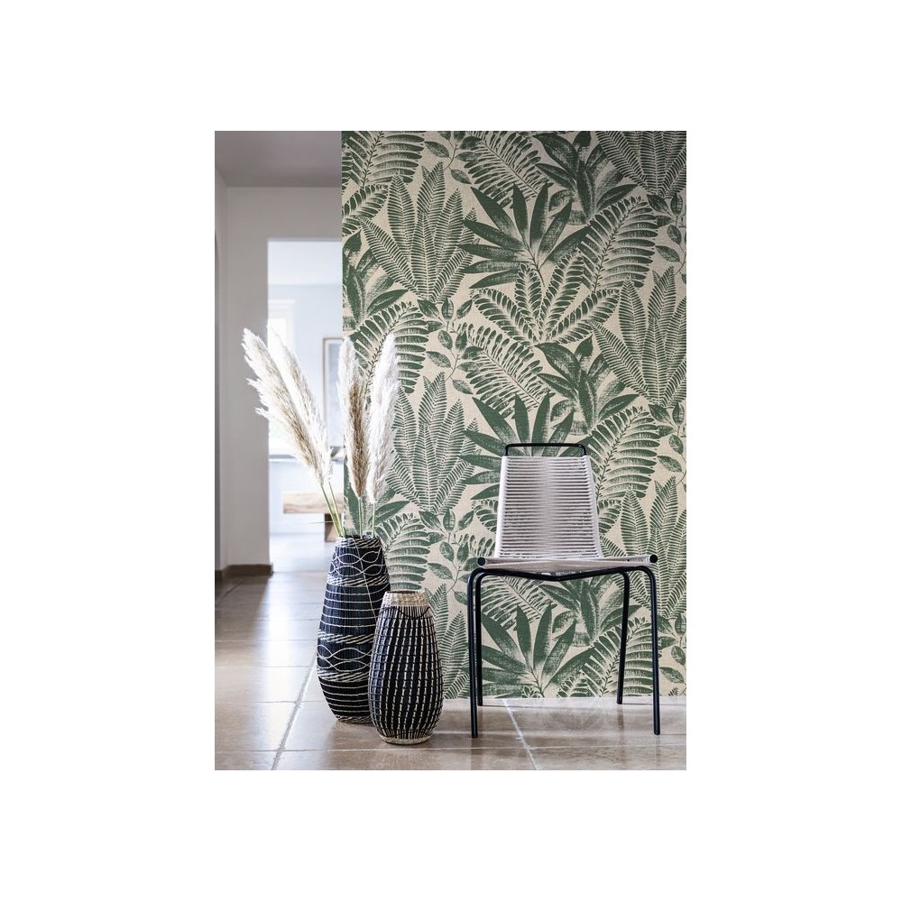 PAPEL PINTADO CASAMANCE KARABANE ALOES VERDE/BEIGE
