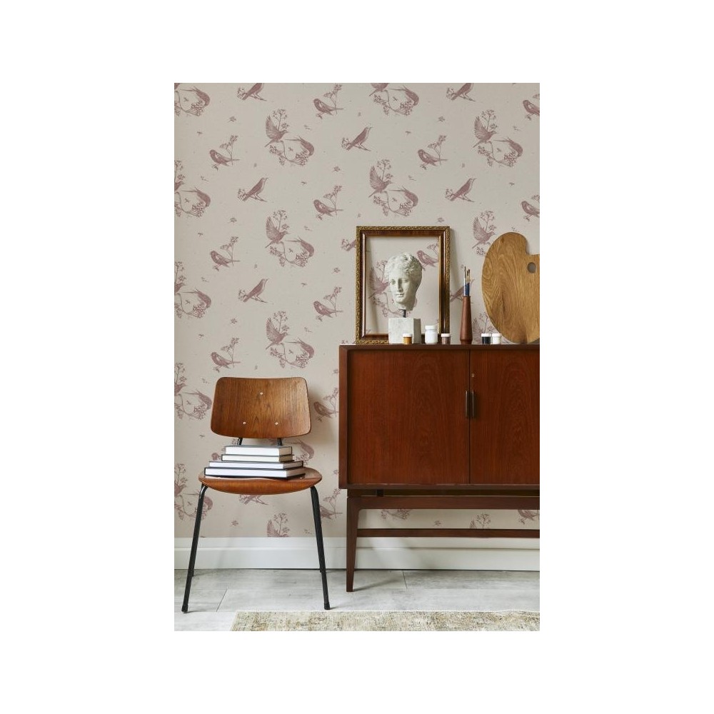 PAPEL PINTADO COORDONNE NATURAE BIRDS ROSE ROSA