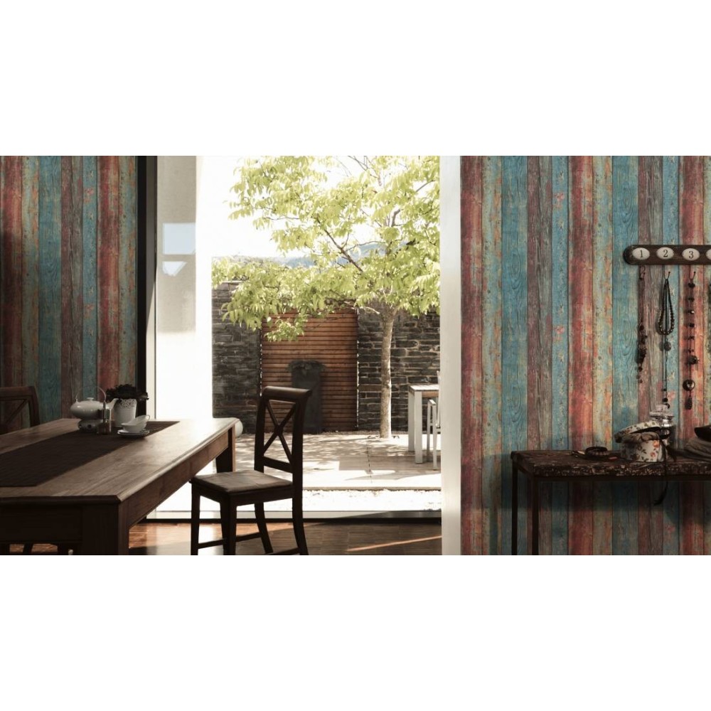 PAPEL PINTADO DISBAR ELEMENTS COZY WOOD AZUL/ROSA