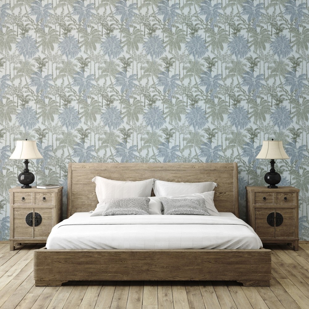 PAPEL PINTADO COORDONNE BRAZIL PALMS CAQUI AZ/VER